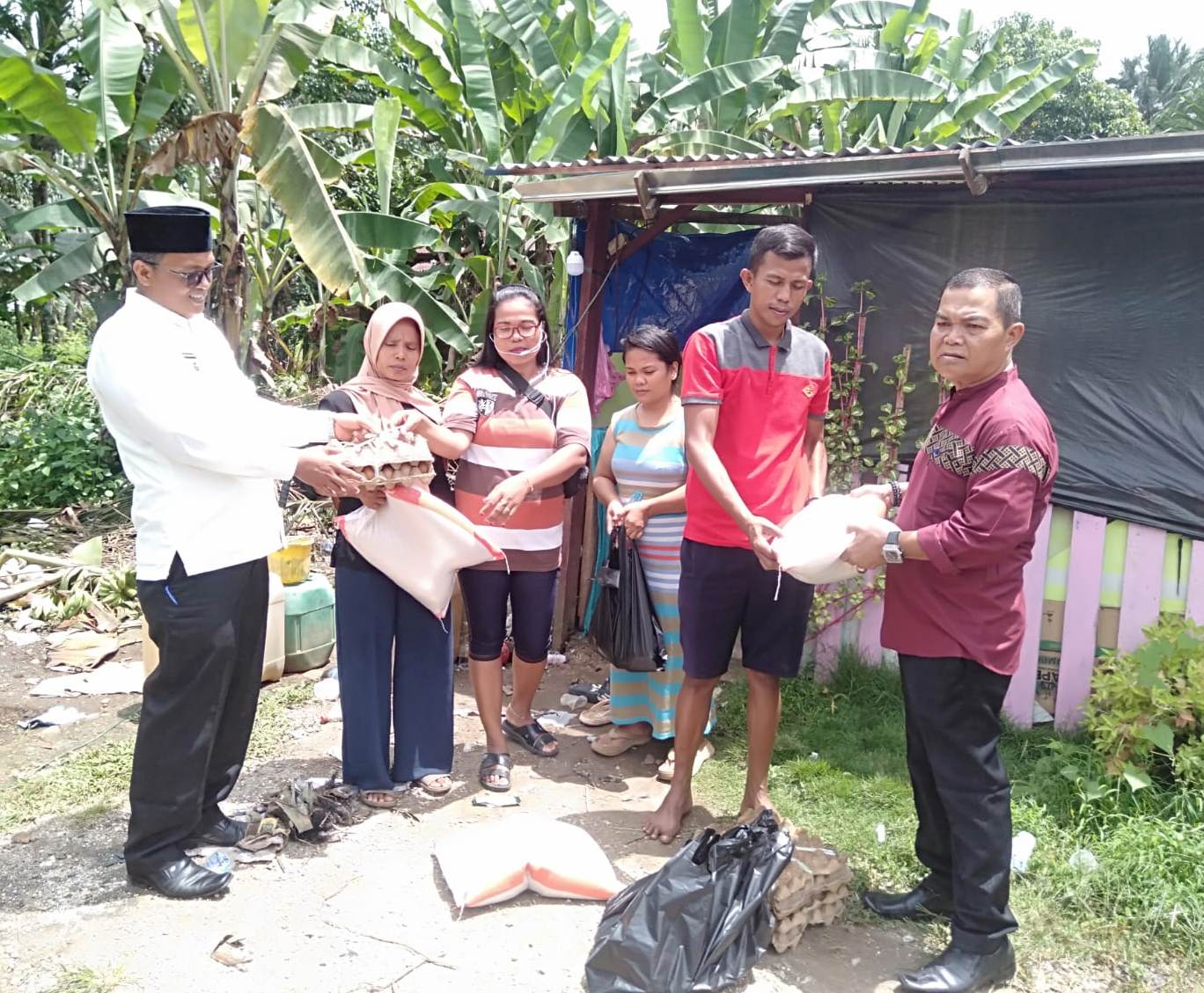 “Bantuan yang kita berikan berupa sembako untuk warga yang kena musibah dimana rumahnya ditimpa pohon sawit beberapa hari yang lalu. Bantuan kita berikan kepada 3 kepala Keluarga”,ucap Walinagari.