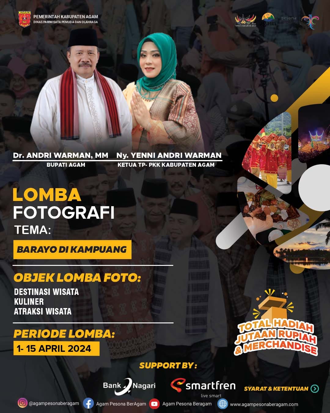 Lomba yang dimulai pada 1-15 April dengan hadiah jutaan rupiah ini diadakan untuk memperkenalkan kekayaan alam dan kehidupan masyarakat di Kabupaten Agam kepada masyarakat luas.