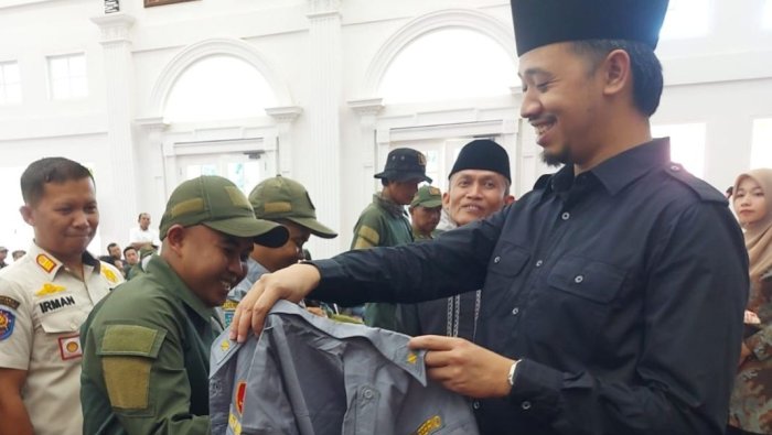 Marawapost.com, Bukittinggi – Pemerintah Kota (Pemko) Bukittinggi gelar evaluasi kinerja dan serahkan honorarium serta penyerahan kelengkapan satgas untuk Satlinmas kelurahan se-Kota Bukittinggi di Balairung rumah dinasnya, Jumat (05/04/24).