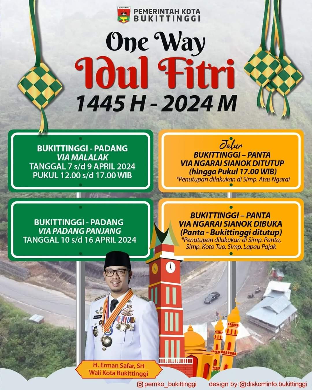 Marawapost.com, Bukittinggi – Pemerintah Provinsi bersama Ditlantas Polda Sumatera Barat menerapkan aturan jalan satu arah digelar guna mengantisipasi padatnya jalur Padang-Bukittinggi saat mudik Lebaran 2024. Pemberlakuan jalur satu arah digelar mulai H-3 hingga H+5 Lebaran, Senin (08/04/24).