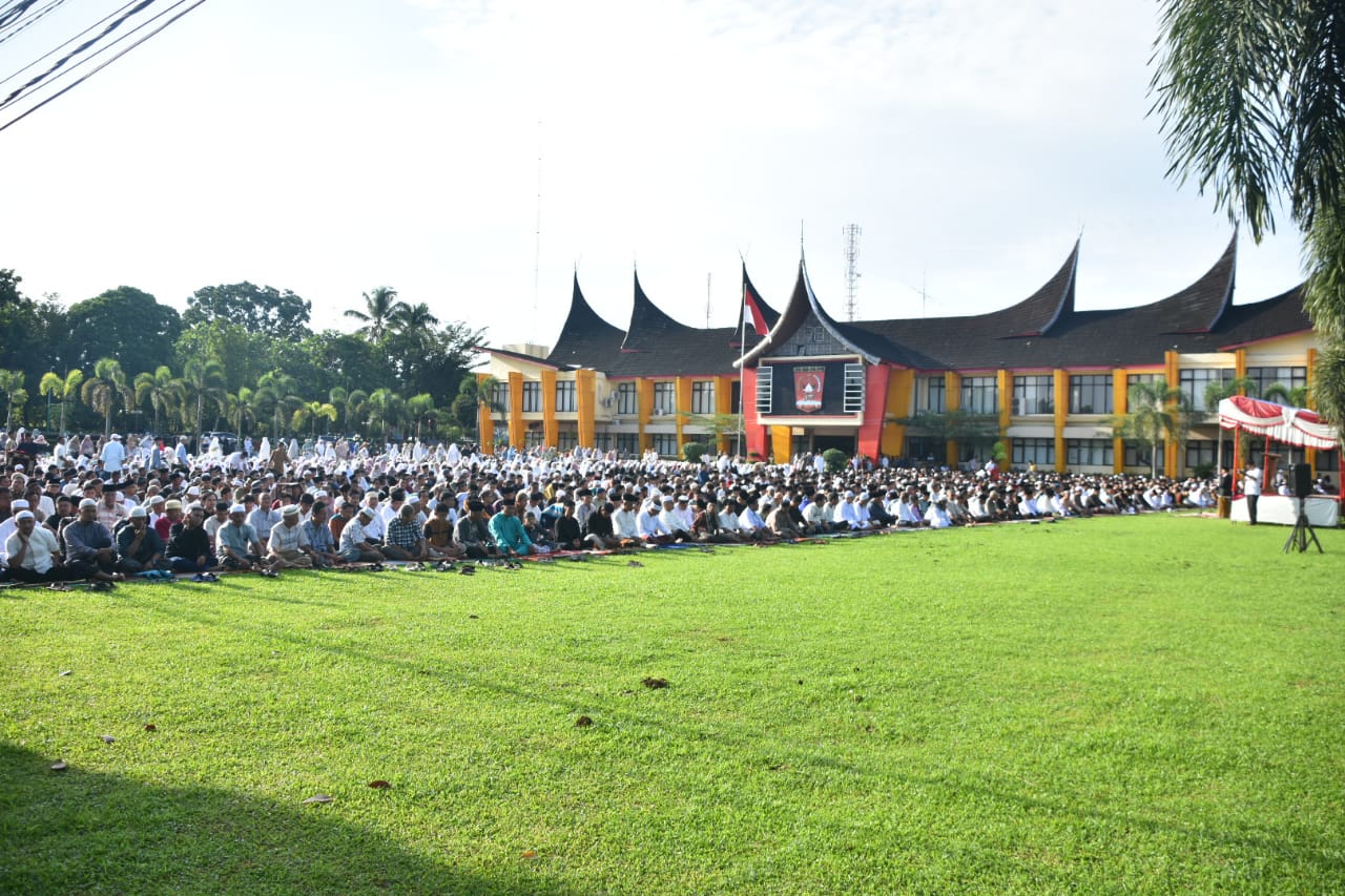 Pelaksanaan Salat Id ini dihadiri Bupati Agam, Dr H Andri Warman MM beserta keluarga, Forkopimda, Kepala OPD dan lainnya.