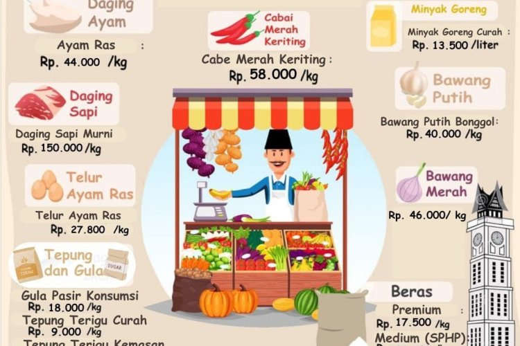 B2SA Cabai Merah Keriting, Cabe Merah Keriting: Rp. 58.000/kg, Minyak Goreng Curah: Rp. 13.500/liter, Bawang Putih Bonggol: Rp. 40.000/kg, Bawang merah Rp. 46.000/kg, Beras Premium Rp. 17.500/kg, Sedang (SPHP) Rp. 11.500/kg. (*)