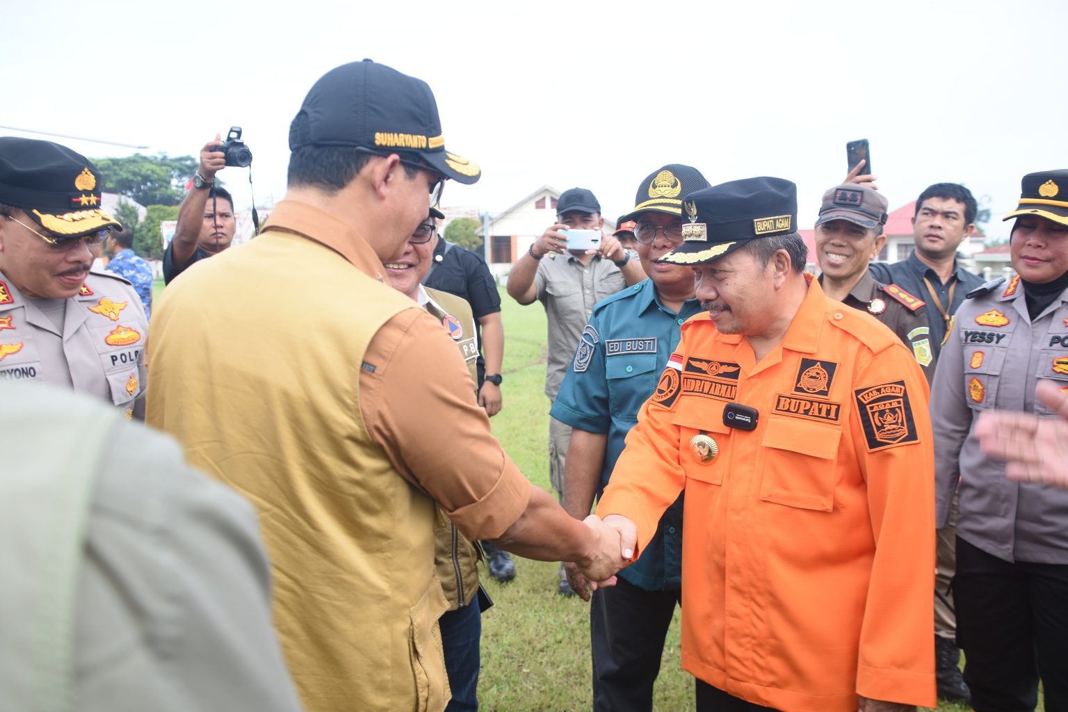 Marawapost.com, Agam – Bupati Agam, Dr H Andri Warman MM bersama Sekretaris Daerah Kabupaten Agam, Drs H Edi Busti M sambut kedatangan rombongan Kepala Badan Nasional Penanggulangan Bencana (BNPB) Letjen TNI Suharyanto di Lapangan Bola Batu Taba, Kecamatan Ampek Angkek, Selasa (14/05/24).