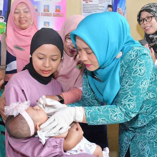 Tidak hanya meninjau, Ny Yenni juga turut melakukan pemberian imunisasi polio bagi bayi, serta makanan tambahan kepada balita.