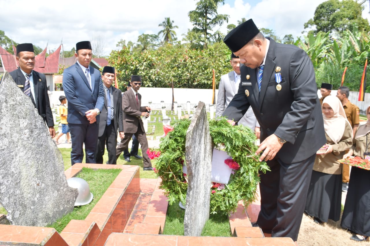 Marawapost.com, Agam – Bupati Agam, Dr H Andri Warman melakukan tabur bunga di Taman Makam Pahlawan (TMP) Perang Kamang, di Kamang Magek, Sabtu (15/06/24).