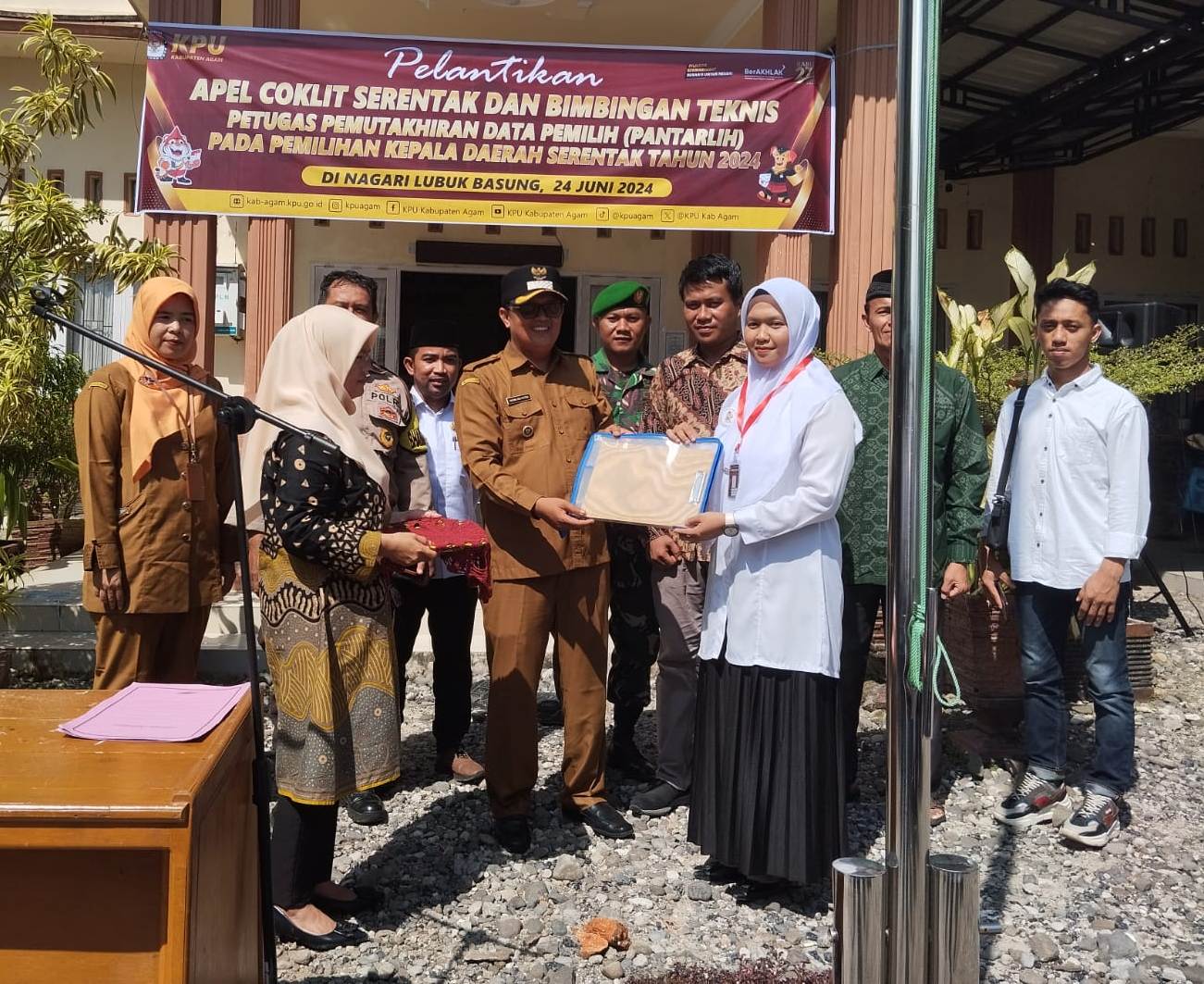 Marawapost.com, Lubuk Basung – Walinagari Lubuk Basung, Darma Ira Putra, SE, MM Dt. Batuah hadiri pelantikan Petugas Pemuktahiran Data Pemilih (Pantarlih) pada pemilihan kepala daerah serentak Tahun 2024 di halaman kantor Walinagari Lubuk Basung, Senin (24/06/24).
