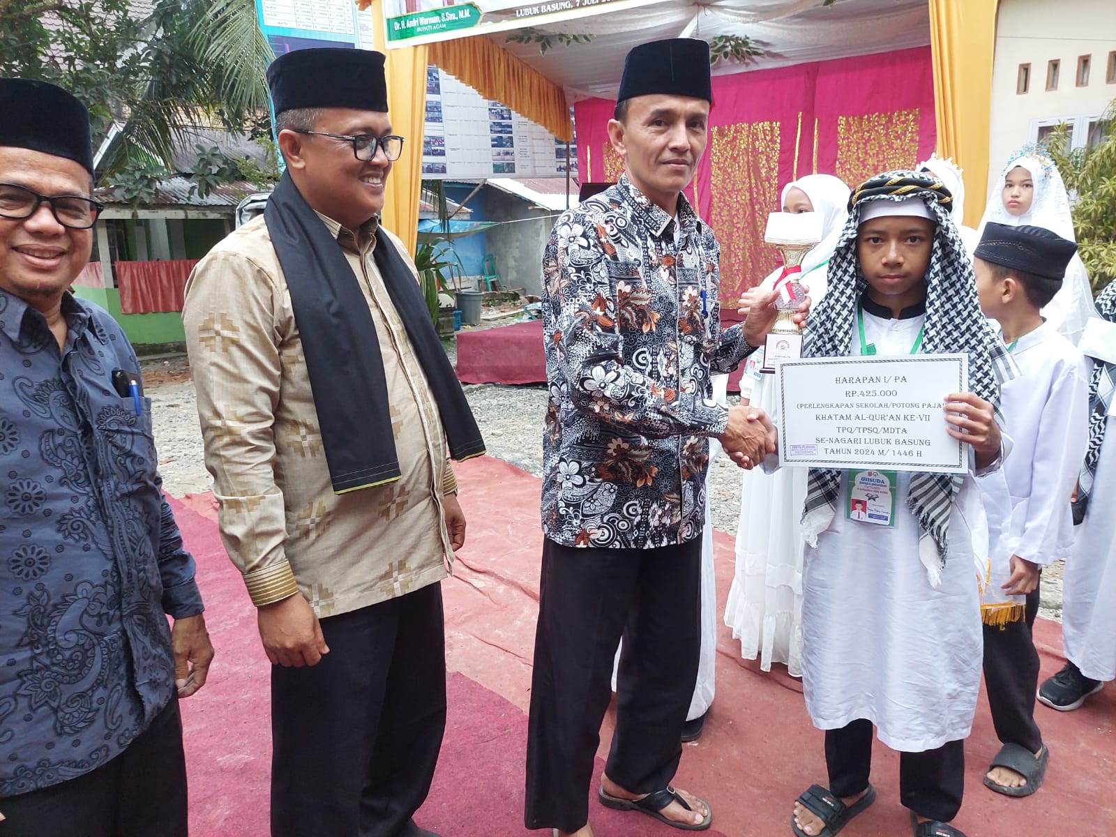 Pada kesempatan itu, Walinagari Lubuk Basung, darma Ira Putra, SE, MM Dt. Batuah mengucapkan selamat kepada pemenang Khatam Al-Qur’an ke-VII TPQ/TPSQ/MDTA Tingkat Nagari Lubuk Basung.