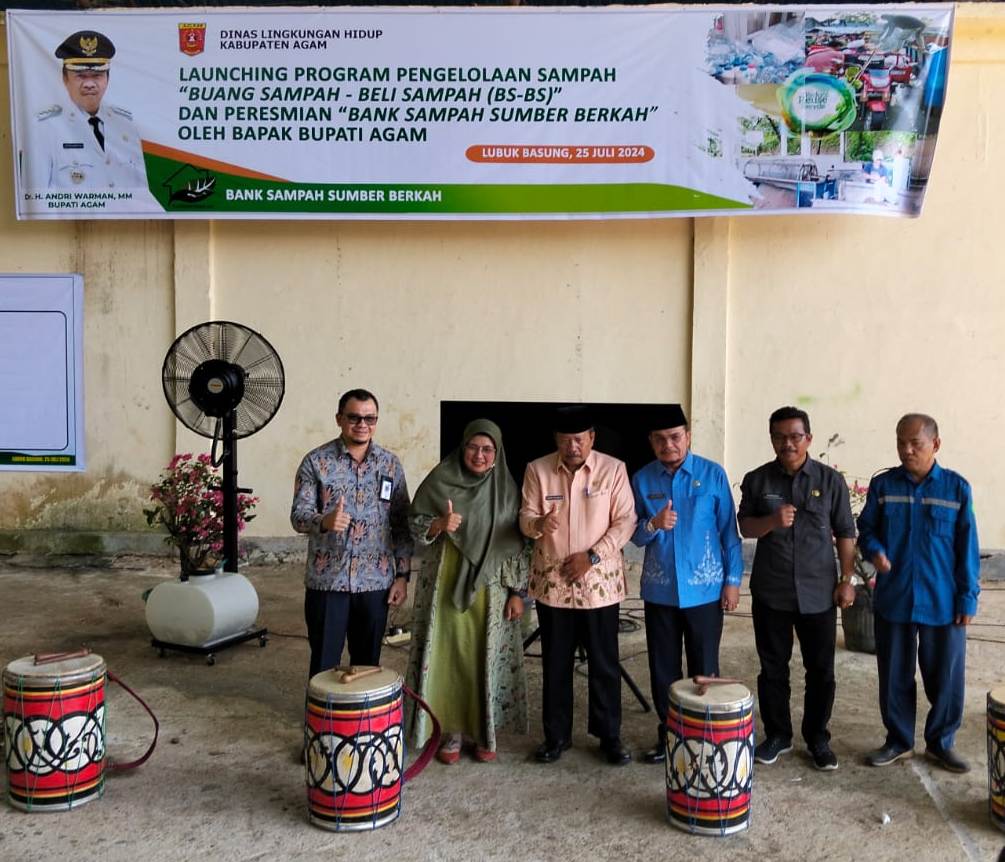 Launching Pengelolaan Sampah “Buang Sampah – Beli Sampah” (BS – BS) dan Bank Sampah Sumber Berkah langsung diresmikan oleh Bupati Agam, Dr. Andri Warman, MM dengan ditandai pemukulan gendang secara bersama-sama disertai penandatanaganan bersama komitmen penanganan sampah dari sumbernya.