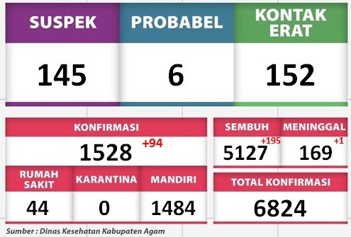 Ditambahkan, kasus meninggal dunia akibat Covid-19 hari ini juga bertambah sebanyak 1 orang yang merupakan warga Tanjung Raya. Total kasus kematian hingga kini tercatat sebanyak 169 kasus.