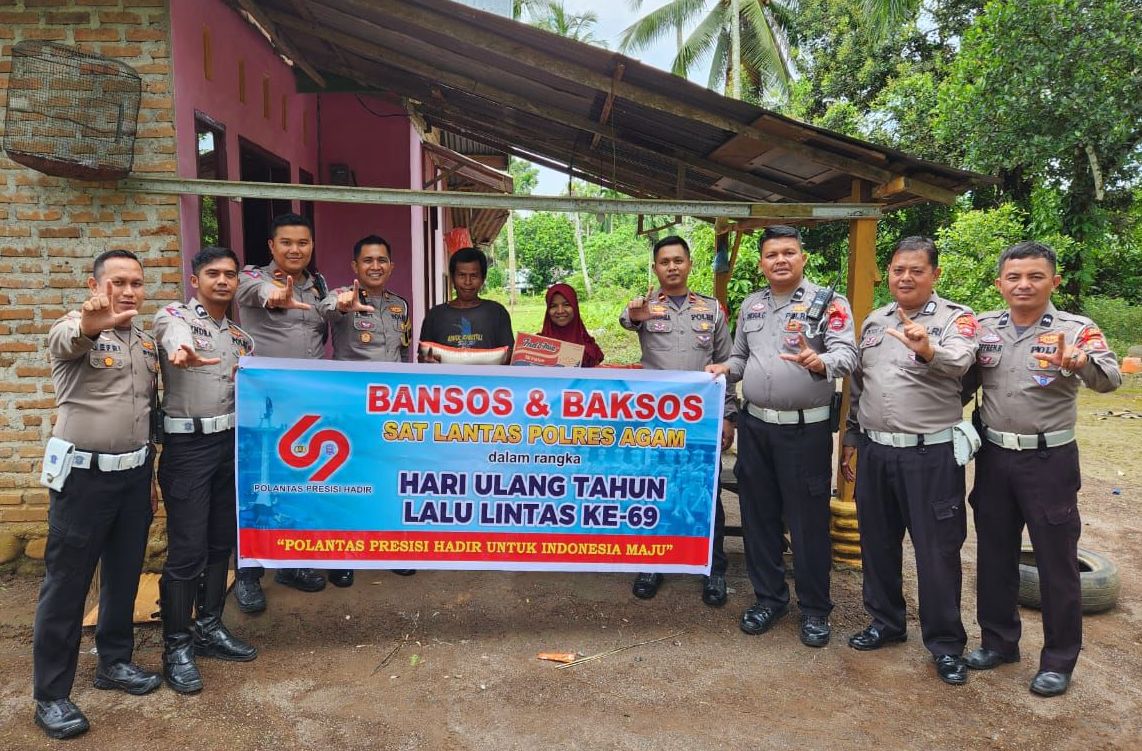 Marawapost.com, Agam – Peringati Hari Ulang Tahun Lalu Lintas ke-69, Satuan Lalu Lintas Polres Agam tidak hanya menggelar kegiatan bakti sosial, tetapi juga menyalurkan bantuan sosial kepada warga kurang mampu, Senin (09/09/24).
