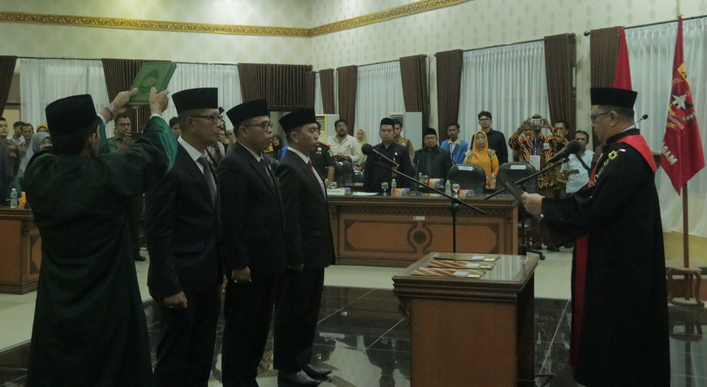 Hadir dalam acara pelantikan ini Bupati Agam Dr. H. Andri Warman, MM, Sekretaris Daerah Kabupaten Agam Drs. H. Edi Busti, M.Si, Asisten I Pemerintah dan Kesra Rahman, S.IP, Staf Ahli, unsur Forkopimda, Ketua KPU, Ketua Bawaslu, Kepala OPD, dan para anggota DPRD Kabupaten Agam.