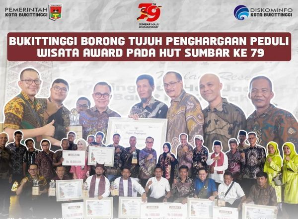Marawapost.com, Bukittinggi – Kota Bukittinggi borong tujuh penghargaan peduli award wisata, pada Hari Jadi Sumatra Barat ke 79. Penghargaan itu, diserahkan Plt Gubernur Sumbar, di Auditorium Gubenuran, Selasa, 01 Oktober 2024.