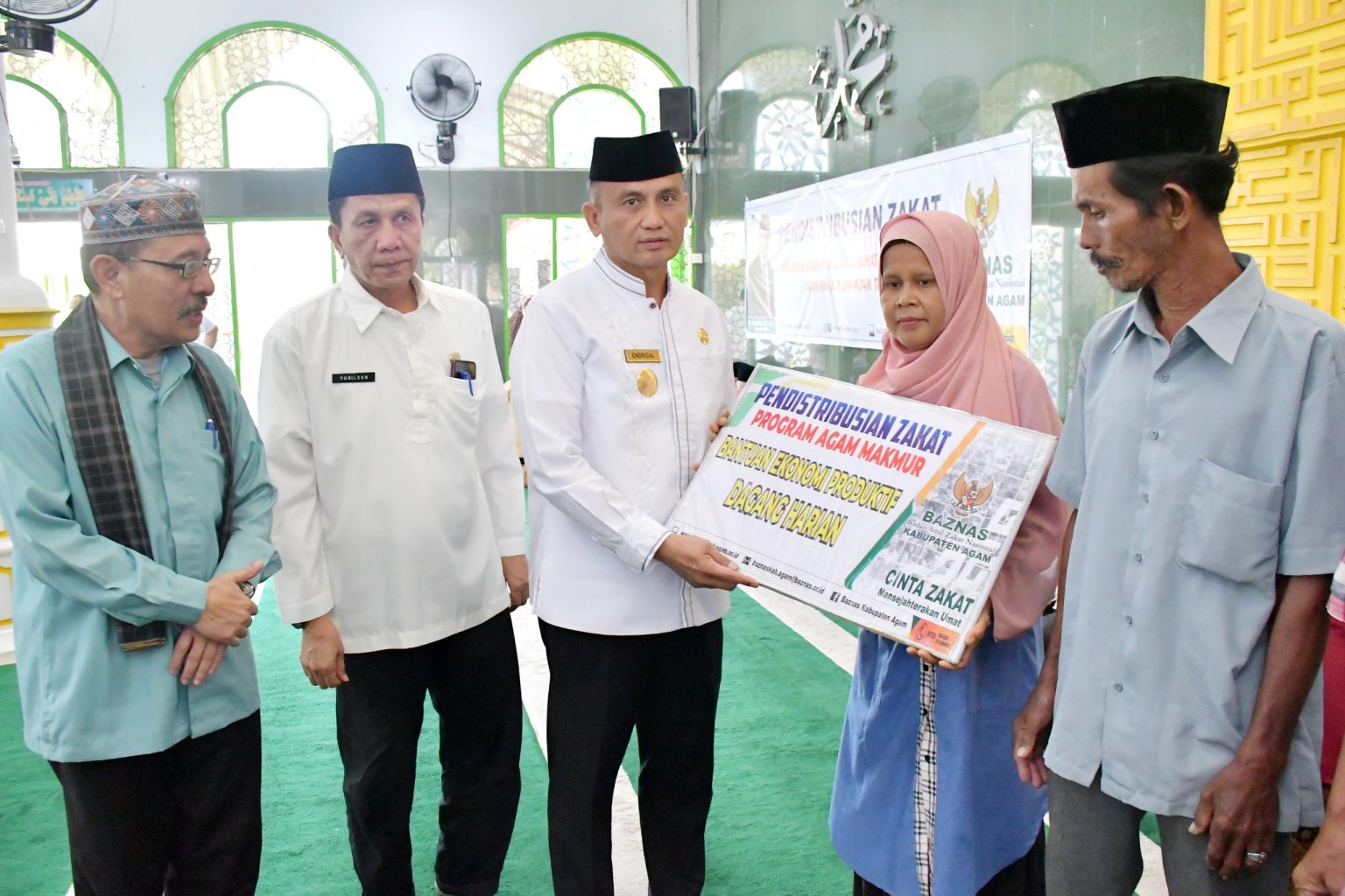 Isman Imran merinci, pendistribusian zakat ini terdiri dari 19 mustahik untuk program Agam Peduli dan 1 mustahik untuk program Agam Taqwa.
