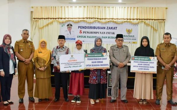 “Khusus Agam Peduli dari jumlah disalurkan, Rp1.860.211.000 diantaranya pengembalian perbantuan ke sekolah se Kabupaten Agam untuk 6096 mustahik atau 40 persen dari jumlah zakat yang disetorkan UPZ sekolah ke BAZ,” terangnya.