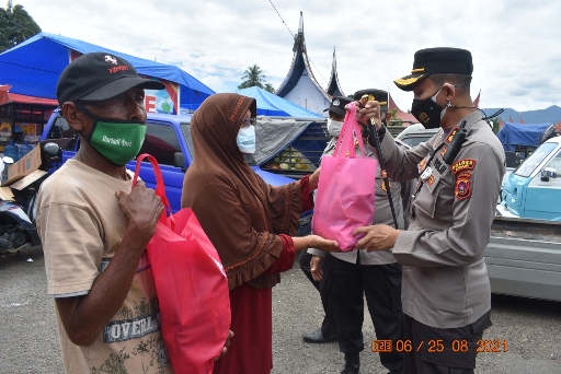 Kemudian, Pendistribusian diserahkan oleh Kapolres Agam Secara langsung ke rumah masing – masing adalah kepada Petugas Kebersihan Pasar Lubuk Basung serta warga yang tidak mampu di sekitar Pasa Lamo Lubuk Basung, Seluruh Tukang Ojek didepan RSUD Lubuk Basung, Perwakilan Petugas Kebersihan RSUD Lubuk Basung serta warga yang tidak mampu di sekitar RSUD Lubuk Basung kab. Agam, Petugas Kebersihan Gor Rang Agam Lubuk Basung serta warga yang tidak mampu di sekitar Gor Rang Agam Lubuk Basung Kec. Lubuk Basung Kab. Agam.