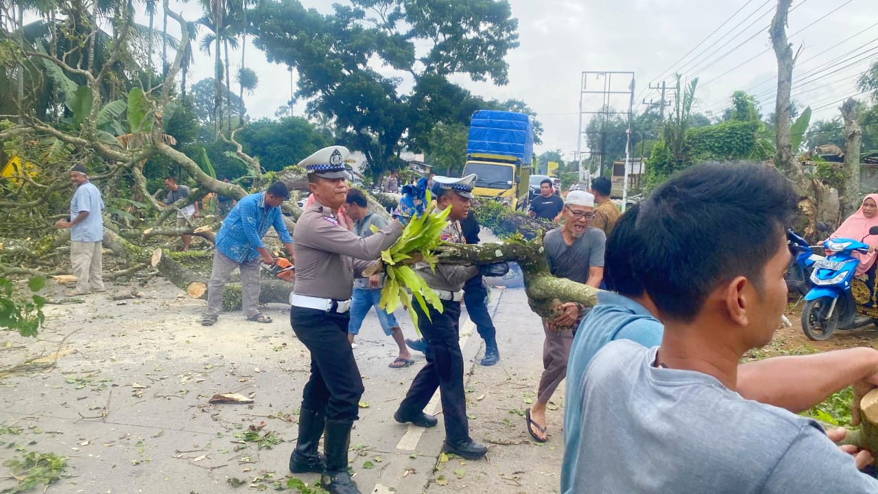 Mendapat informasi tersebut tiem dari Dinas BPBD dan dari polres Dharmasraya di bantu masyarakat setempat langsung menuju ke TKP, dan mengevakuasi,membersihkan kayu kayu pohon tersebut yang memakan jalan lintas, supaya arus lalu lintas tetap berjalan lancar.