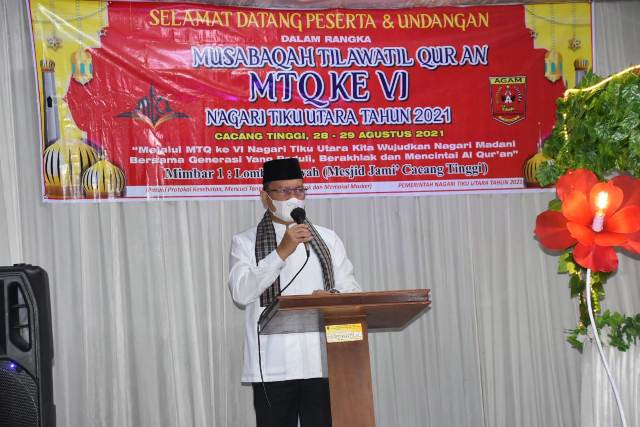 Hal ini disampaikan wabup saat pembukaan Musabaqah Tilawatil Qur’an ke VI di Masjid Jami’ Cacang Tinggi, Nagari Tiku Utara, Kecamatan Tanjung Mutiara, Sabtu malam (28/08).