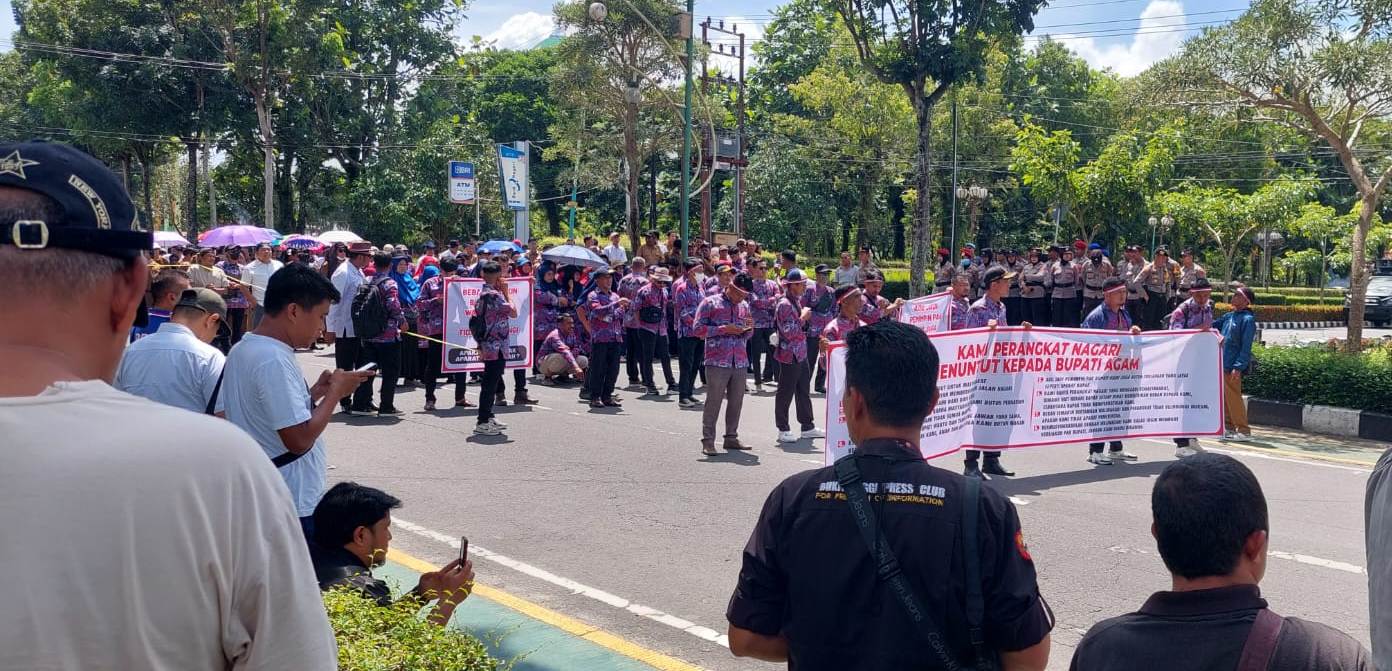 Marawapost.com, Agam – Ratusan anggota Persatuan Perangkat Desa Indonesia (PPDI) Kabupaten Agam gelar aksi damai didepan kantor Bupati Agam, padang baru Jorong Surabayo Lubuk Basung, Senin (17/02/25).