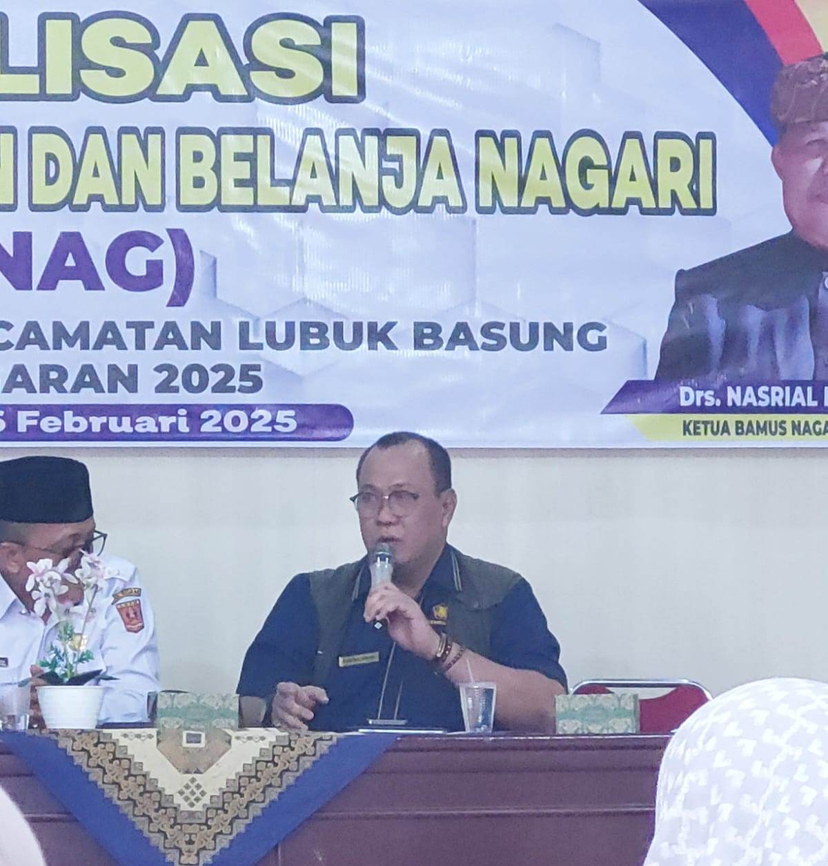 Marawapost.com, Lubuk Basung – Kepala Kantor Pelayanan dan Perbendaharaan Negara (KPPN) Bukittinggi, Khairil Indra hadiri sosialisasi Anggaran Pendapatan dan Belanja Nagari (APBNag) Lubuk Basung Tahun 2025, Rabu (26/02/25).