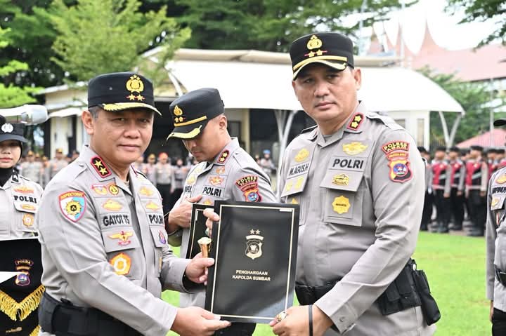 Penghargaan tersebut diserahkan langsung oleh Kapolda Sumbar dalam sebuah upacara resmi yang digelar di halaman depan Mapolda Sumbar pada Senin (17/3/2025), bertepatan dengan apel bulanan kepolisian.