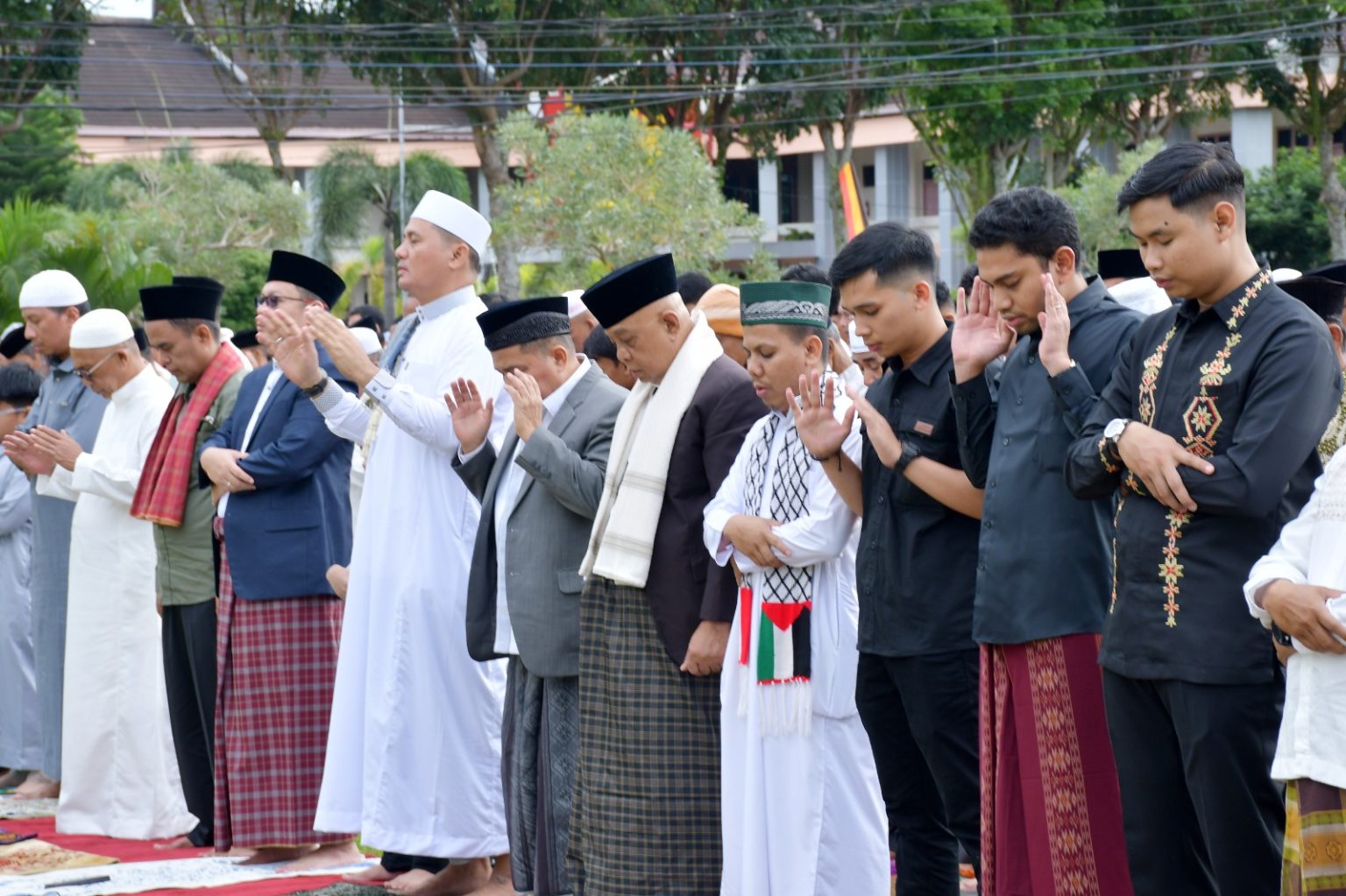 Shalat Idul Fitri ini dihadiri oleh berbagai elemen masyarakat, mulai dari pejabat daerah hingga Perantau, yang bersama -sama merayakan hari kemenangan setelah sebulan penuh menjalankan ibadah puasa.