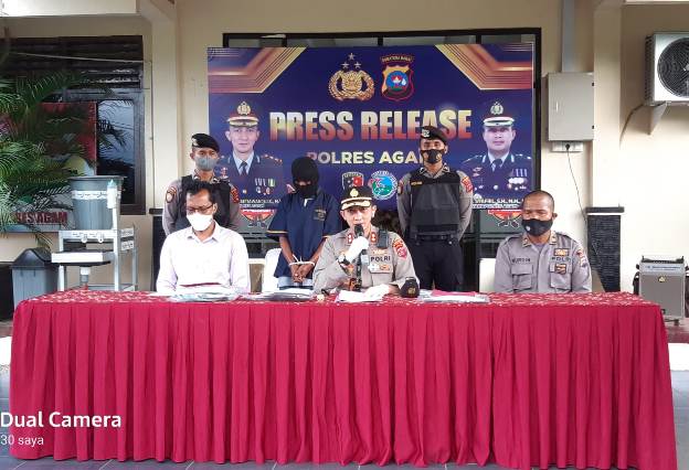 Agam, Marawa – Satreskrim Kepolisian Resort (Polres) Agam Sumatera Barat berhasil meringkus seorang tersangka yang diduga melakukan pencabulan sesama jenis terhadap anak dibawah umur. Hal ini diungkapkan Kapolres Agam, AKBP. Dwi Nur Setiawan, SH. MH didampingi Kasatreskrim Polres Agam, AKP Farel Haris, MH dan Kasubag Humas Polres Agam, AKP Nurdin saat Press Realiss di Mapolres Agam, Jum’at (10/09/21).