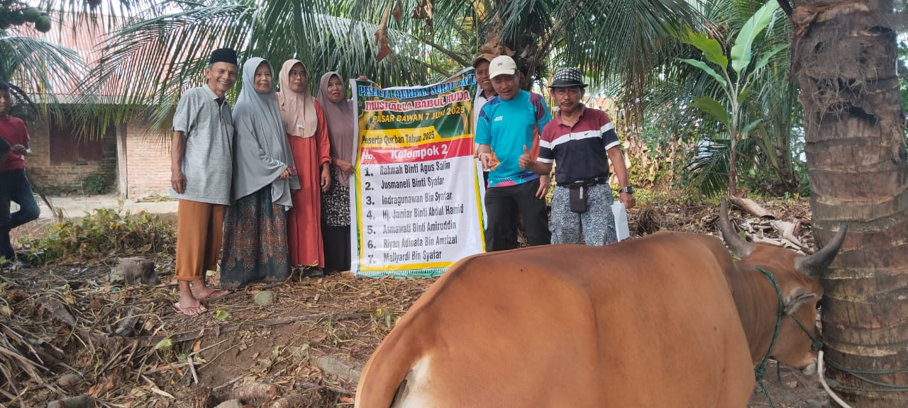 Marawapost,com.Bawan– Dalam rangka merayakan Hari Raya Idul Adha 1446 Hijriyah, panitia kurban mushala Babul Huda ( surau batu ) pasar bawan menggelar kegiatan penyembelihan hewan Kurban. kegiatan ini menjadi salah satu bentuk aktualisasi nilai keagamaan dan sosial yang terus dijaga oleh panitia kurban Bersama pengurus musholla Babul Huda ( surau batu ) pasar bawan dalam kehidupan berorganisasi dan bermasyarakat terutama anak kemenakan di bawah payuang i.Dt.Tanmajolelo.Sabtu (07/06/2025).