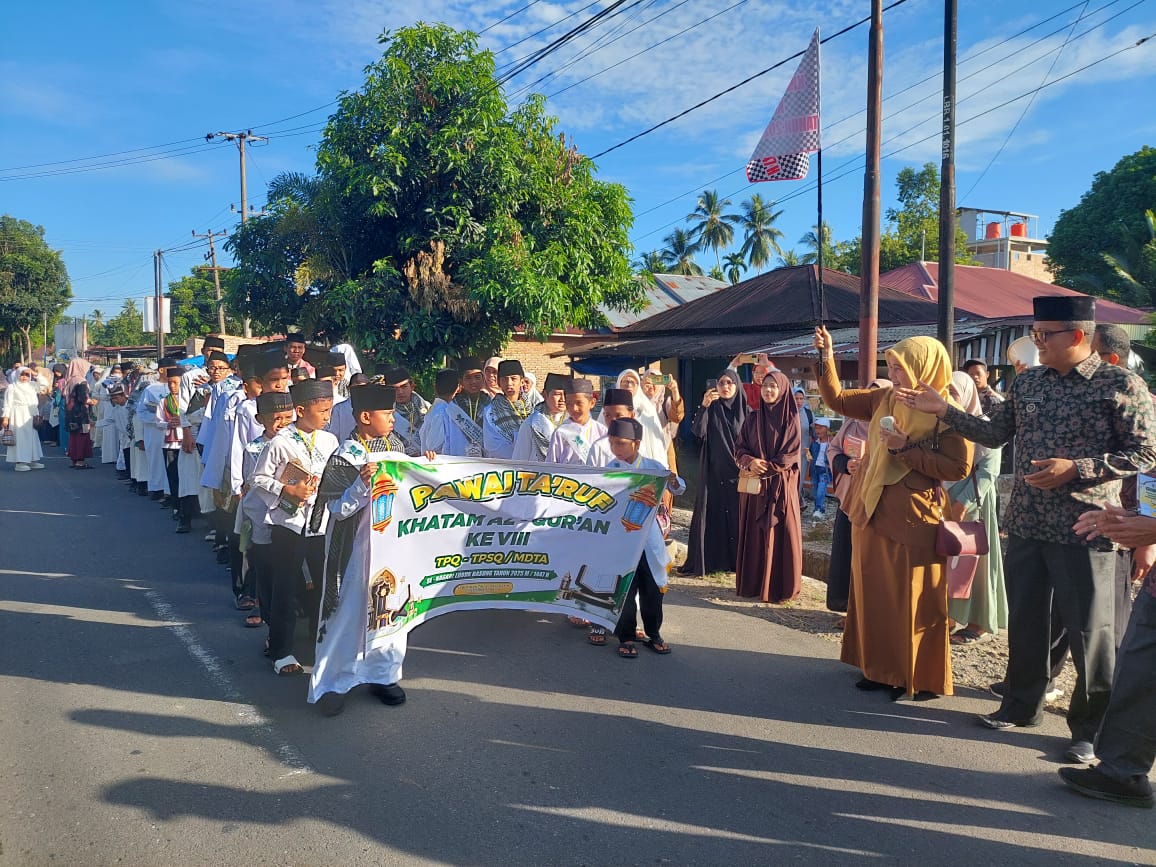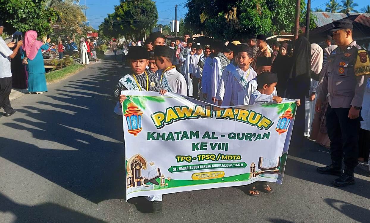 Pawai Ta’aruf Khatam Al-Qur’an TPQ-TPSQ/MDTA Nagari Lubuk Basung berlangsung tertib, aman dan lancar sampai menuju titik finish di kantor nagari Lubuk Basung. (RieL)
