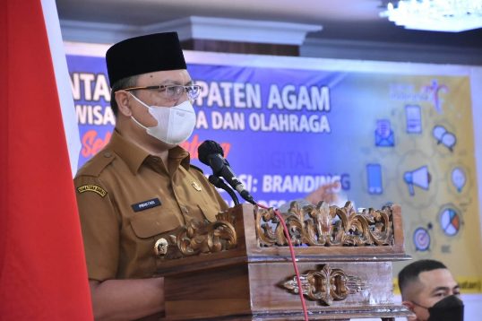 “Apalagi di era digital saat ini banyak mengusung inovasi teknologi, serta konten kreatif sebagai unsur utama pemasaran pariwisata,” ujar Irwan Fikri saat buka pelatihan digitalisasi, di Hotel Sakura Syariah Lubuk Basung, Senin (20/09).