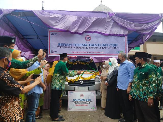 Dalam serah terima bantua CSR itu juga dilakukan pemberian bantuan pembangunan gedung Paud Yayasan Adzkia Atilah Nagari Air Bangis Kecamatan Sungai Beremas, di Masjid Taqwa Tamiang Ujung Gading, Minggu (19/09/2021).