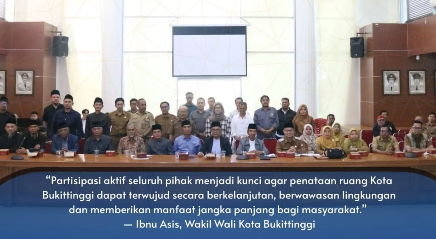 Marawapost.com, Bukittinggi — Pemerintah Kota Bukittinggi bersama Pusat Studi Lingkungan Hidup (PSLH) Universitas Andalas gelar Konsultasi Publik I Kajian Lingkungan Hidup Strategis (KLHS) Rencana Tata Ruang Wilayah (RTRW) Kota Bukittinggi Tahun 2025–2045. Kegiatan ini berlangsung di Balaikota Bukittinggi, Selasa (12/8/2025).