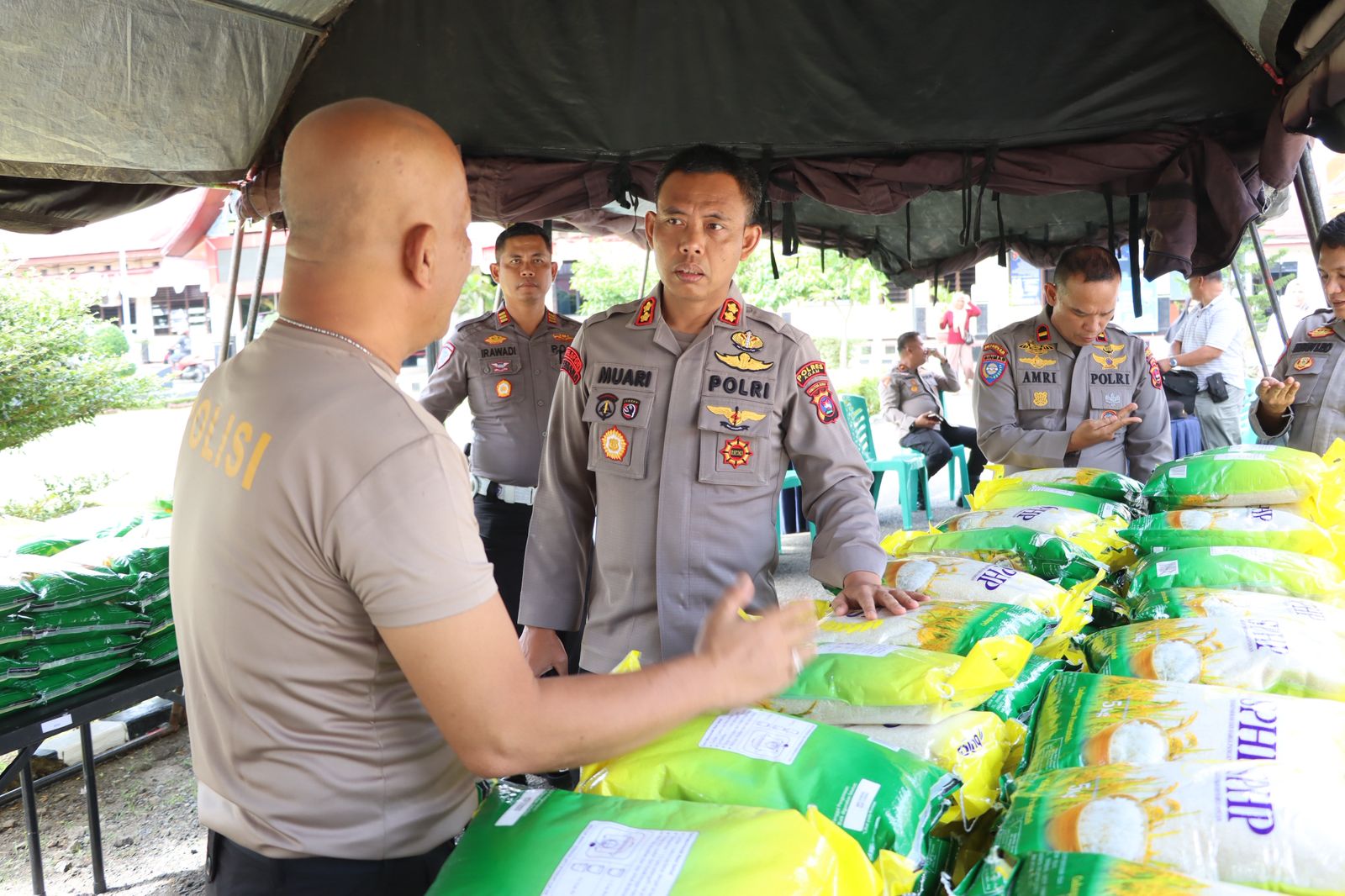Kabag SDM Polres Agam AKP Anton Kusuma Jaya menjelaskan gerakan pangan murah Polri yang dilaksanakan Polres Agam dan Polsek sejajaran Polres Agam yang dilaksanakan serentak pada hari Kamis 14 Agustus 2025. Total ada sebanyak 19 ton dalam kemasan per 5 Kilogram.