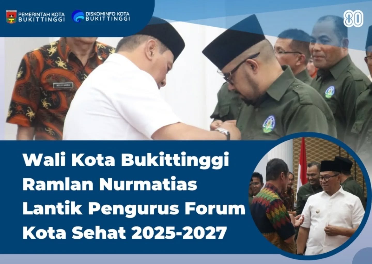 Marawapost.com, Bukittinggi – Wali Kota Bukittinggi, Ramlan Nurmatias resmi melantik pengurus Forum Kota Sehat (FKS). Pelantikan ini berlangsung di Balairung Rumah Dinas Wali Kota, Kamis, 14 Agustus 2025.
