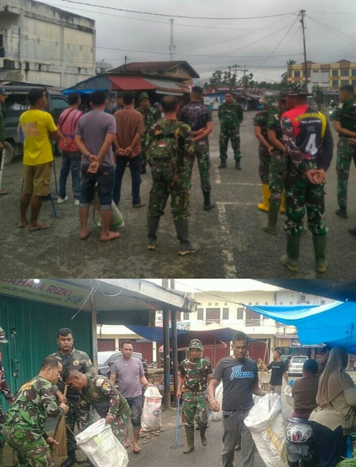 Pasiter Kodim 0310/SS, Kapten Inf Mondrayadi, menegaskan kebersihan pasar merupakan faktor penting dalam menjaga kelancaran transaksi jual beli. Lingkungan yang kotor, kata dia, berpotensi menimbulkan bau tak sedap dan mengurangi minat pembeli.