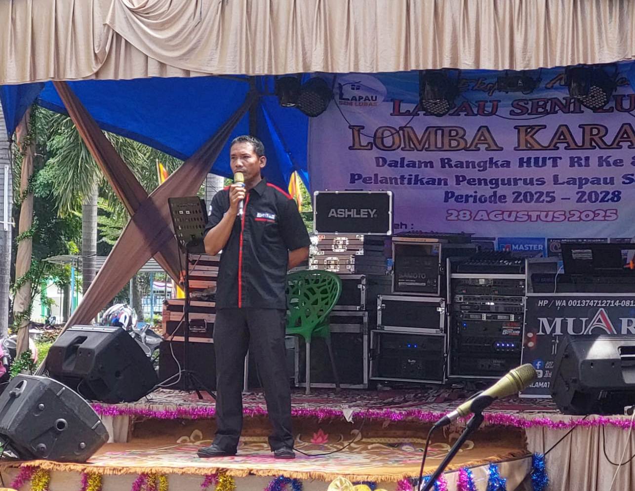 Marawapost.com, Agam – “Lapau Seni Lubas” gelar lomba karauke di GOR Rang Agam Padang Baru Jorong IV Surabayo Lubuk Basung Kabupaten Agam Sumatera Barat, Kamis (28/08/25). Kegiatan ini diselenggarakan dalam rangka memperingati HUT RI ke – 80 dan Pelantikan Pengurus Lapau Seni Lubas periode 2025 – 2028.