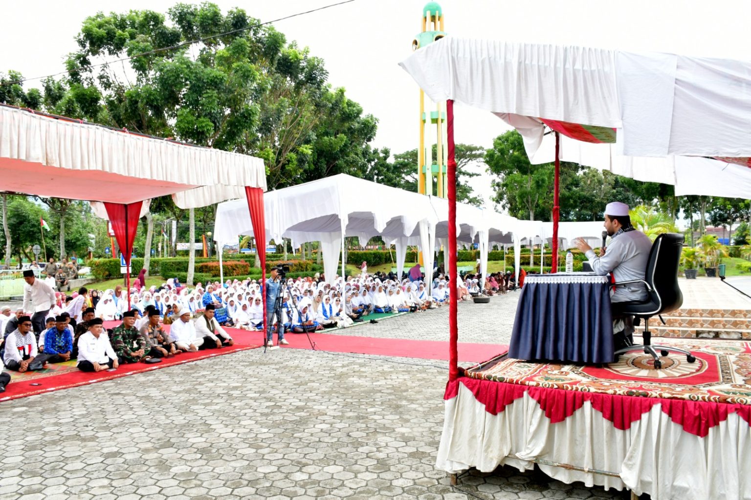 “Mari kita perbanyak bersalawat dan mengikuti jejak Rasulullah, baik dalam kepemimpinan, kehidupan bermasyarakat, maupun dalam keluarga. Semua akhlak beliau adalah teladan yang dituntunkan Allah dan itu yang harus kita ikuti,” ujarnya.