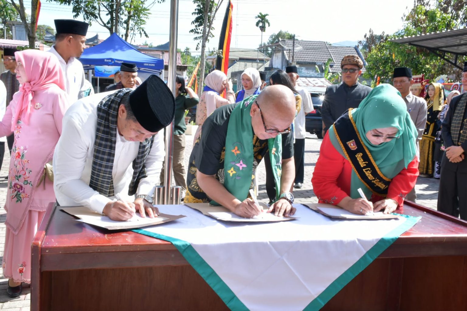 Sementara itu, Ketua TP PKK Agam, Ny Merry Benni Warlis, menuangkan pesan, “melalui membaca kita bisa menguasai dunia.” Sedangkan Sekda Agam, Dr Lutfi, AR, SH, M.Si menegaskan nilai lokal dengan menulis, “alam takambang jadi guru.”