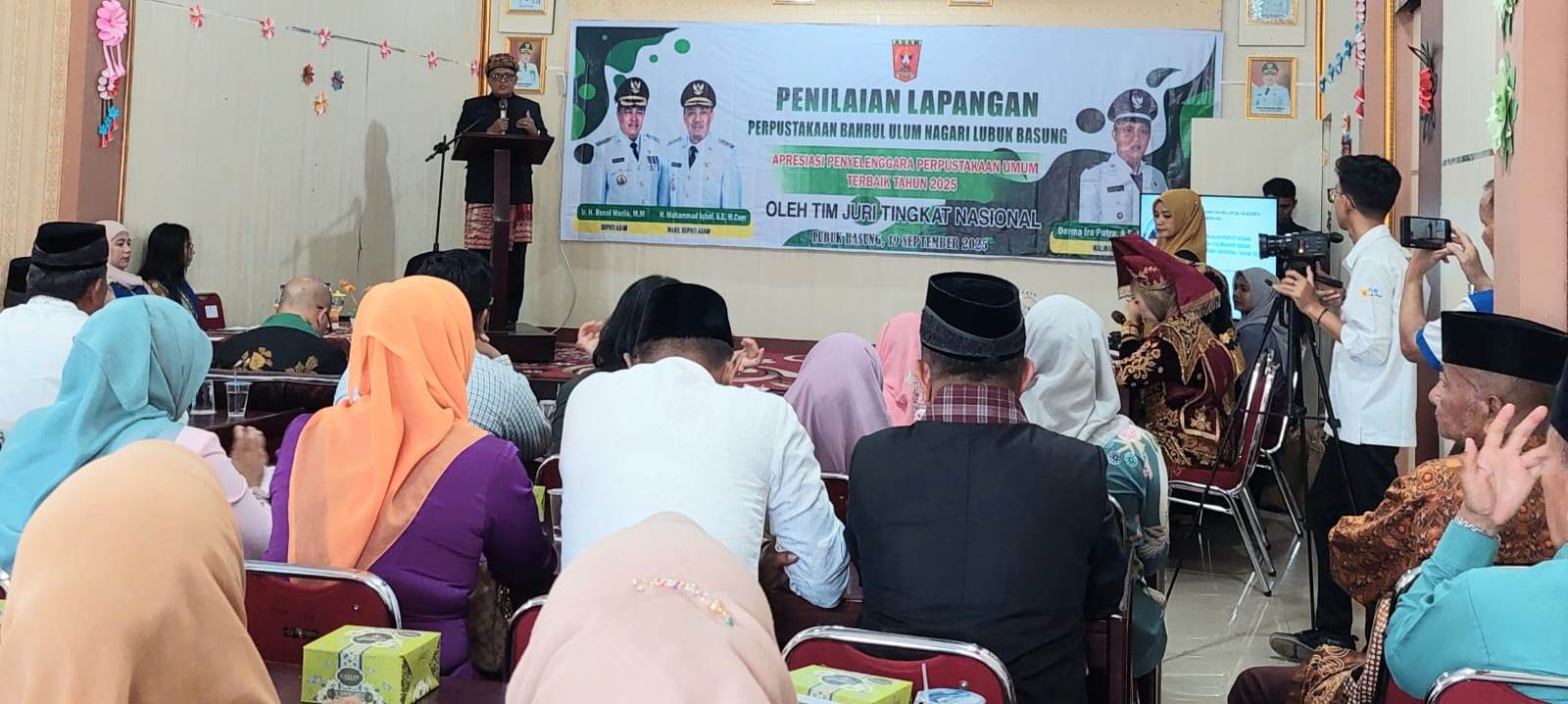 Pada kesempatan tersebut, Walinagari Lubuk Basung, Darma Ira Putra, SE, MM Dt. Batuah mengucapkan selamat datang kepada tim penilai perpustakaan nasional di Nagari Lubuk Basung.