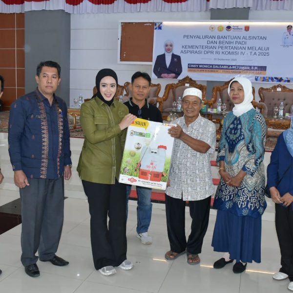 Marawapost.com, Agam – Sekretaris Daerah Kabupaten Agam, Dr M Lutfi AR dampingi Anggota DPR RI, Cindy Monica Salsabila Setiawan, menyalurkan bantuan alat mesin pertanian (alsintan) dan benih padi kepada kelompok tani di Balerong Rumah Dinas Bupati Agam, Padang Baru, Lubuk Basung, Sabtu ,(20/09/25).