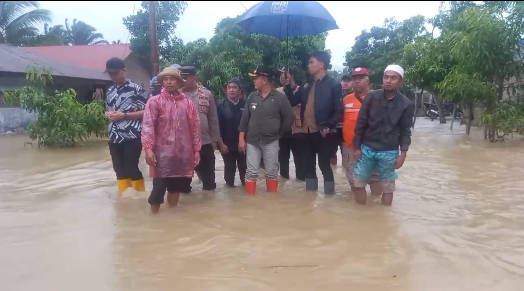 Marawapost.com, Pasaman — Di tengah derasnya hujan dan tingginya genangan air, Bupati Pasaman Welly Suhery turun langsung meninjau lokasi terdampak banjir pada Kamis (27/11) sore. Dengan sepatu bot dan kondisi lapangan yang masih penuh luapan air, Bupati berdiri di antara warga dan petugas, memastikan penanganan bencana berjalan cepat dan tepat.
