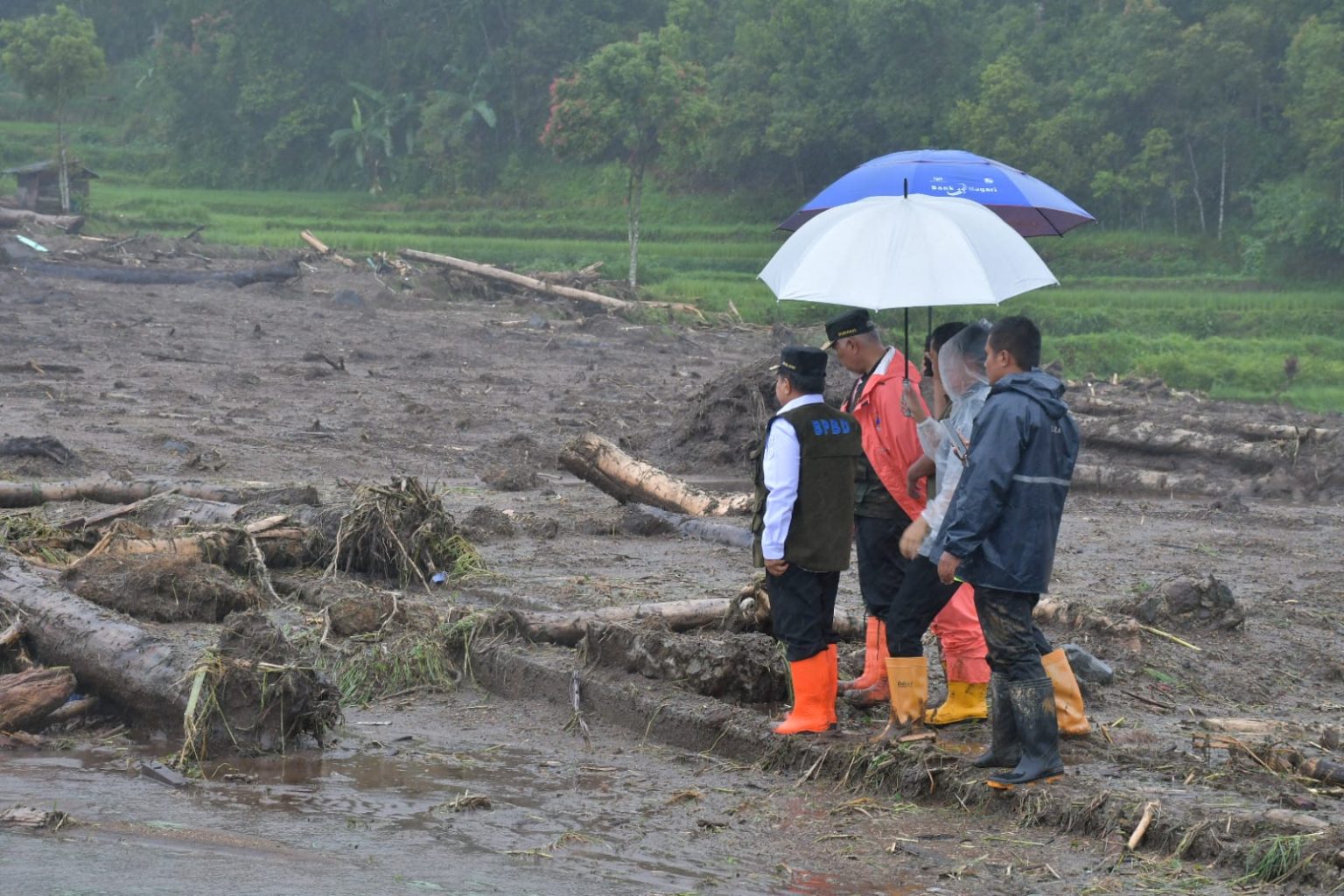 Bupati dan Gubernur juga berdiskusi dengan tim SAR mengenai rencana evakuasi warga yang masih terjebak longsor.