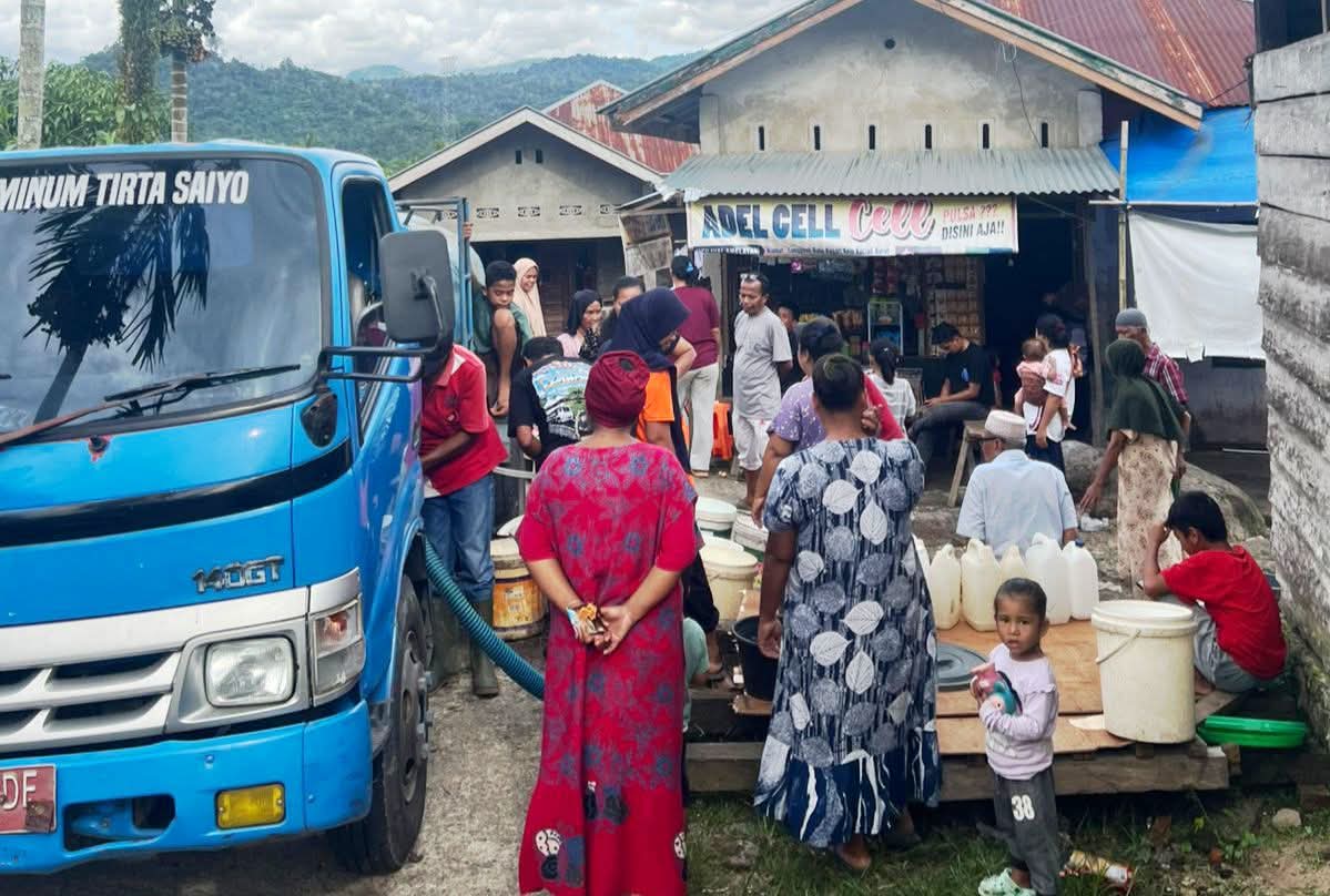 Pada Minggu (30/11), Direktur Utama Perumda Tirta Saiyo, Deddy Eka Putra, turun langsung memimpin proses pendistribusian air bersih ke pemukiman warga. Mobil tangki dikerahkan untuk memenuhi kebutuhan air harian masyarakat yang terdampak.