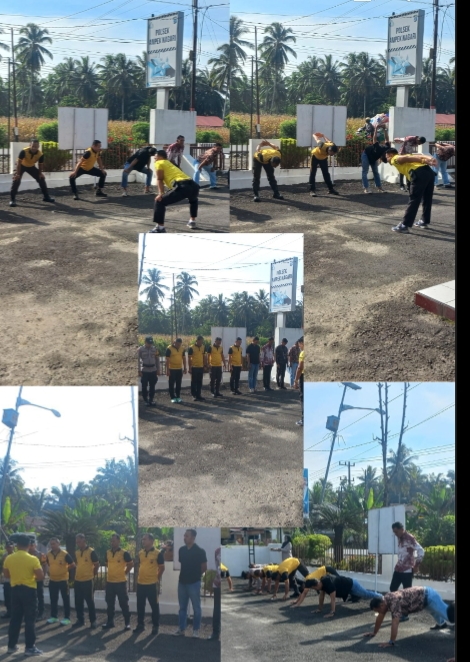 Kegiatan olahraga diawali dengan apel pagi dipimpin oleh Kapolsek Padang IPTU Novandri yang di ikuti oleh Anggota Polsek ampek nagari
