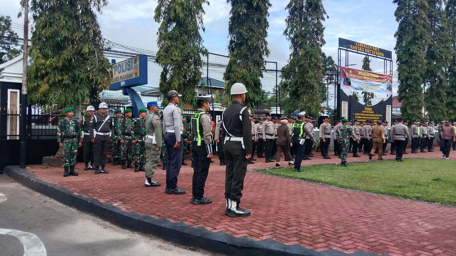 Rangkaian apel meliputi pemeriksaan pasukan, penyematan pita tanda operasi, pembacaan amanat pimpinan, hingga doa bersama yang berlangsung dengan tertib dan khidmat.