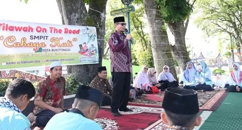 Marawapost.com, Bukittinggi — Wakil Wali Kota Bukittinggi, Ibnu Asis, membuka secara resmi kegiatan Tilawah On The Road yang digelar SMPIT Cahaya Hati Bukittinggi di Pedestrian Jam Gadang.