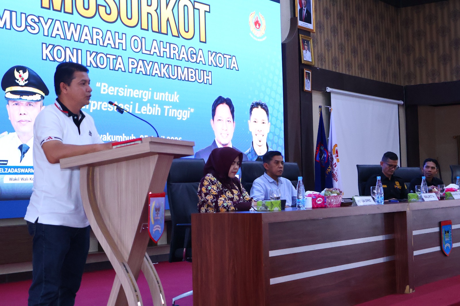 “Atas nama Pemko Payakumbuh, kami menyampaikan apresiasi dan terima kasih kepada seluruh pengurus KONI Kota Payakumbuh periode 2022–2026 atas dedikasi dan pengabdiannya,” kata Wali Kota Payakumbuh Zulmaeta yang diwakili Asisten I Nofriwandi saat membuka Musorkot di Aula Josrizal Zain, Balai Kota Payakumbuh, Sabtu (25/04/2026).