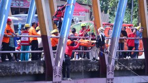 Setelah apel, peserta mengikuti gladi penanganan darurat yang melibatkan puluhan kendaraan operasional, termasuk dua unit ambulans dari Dinas Kesehatan, tiga unit motor trail dan satu armada damkar dari Satpol PP dan Damkar, serta dua unit motor patroli dari Dinas Perhubungan.