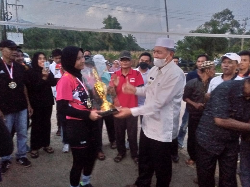 Pasbar , Marawa – Bupati Pasaman Barat Hamsuardi menghadiri sekaligus menutup dan penyerahaan hadiah kepada pemenang turnamen Volly Ball Wali Nagari Cup 2021 yang di selenggarakan di Kejorongan Bandua Balai, Nagari Kinali Kecamatan Kinali, Jumat (12/11/21).
