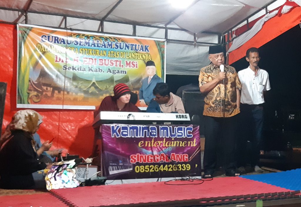 Agam, Marawa – Dalam rangka mensyukuri atas pelantikan Sekretaris Daerah Kabupaten Agam, Drs. H. Edi Busti MSi pada hari jum’at lalu (03/12), para sahabat dan rekan-rekan beliau (Mastar cs) menggelar acara saluang dangdut dengan tema “Gurau Samalam Suntuak” di GOR Rang Agam Padang Baru Lubuk Basung Kabupaten Agam, Rabu malam (08/12/21).