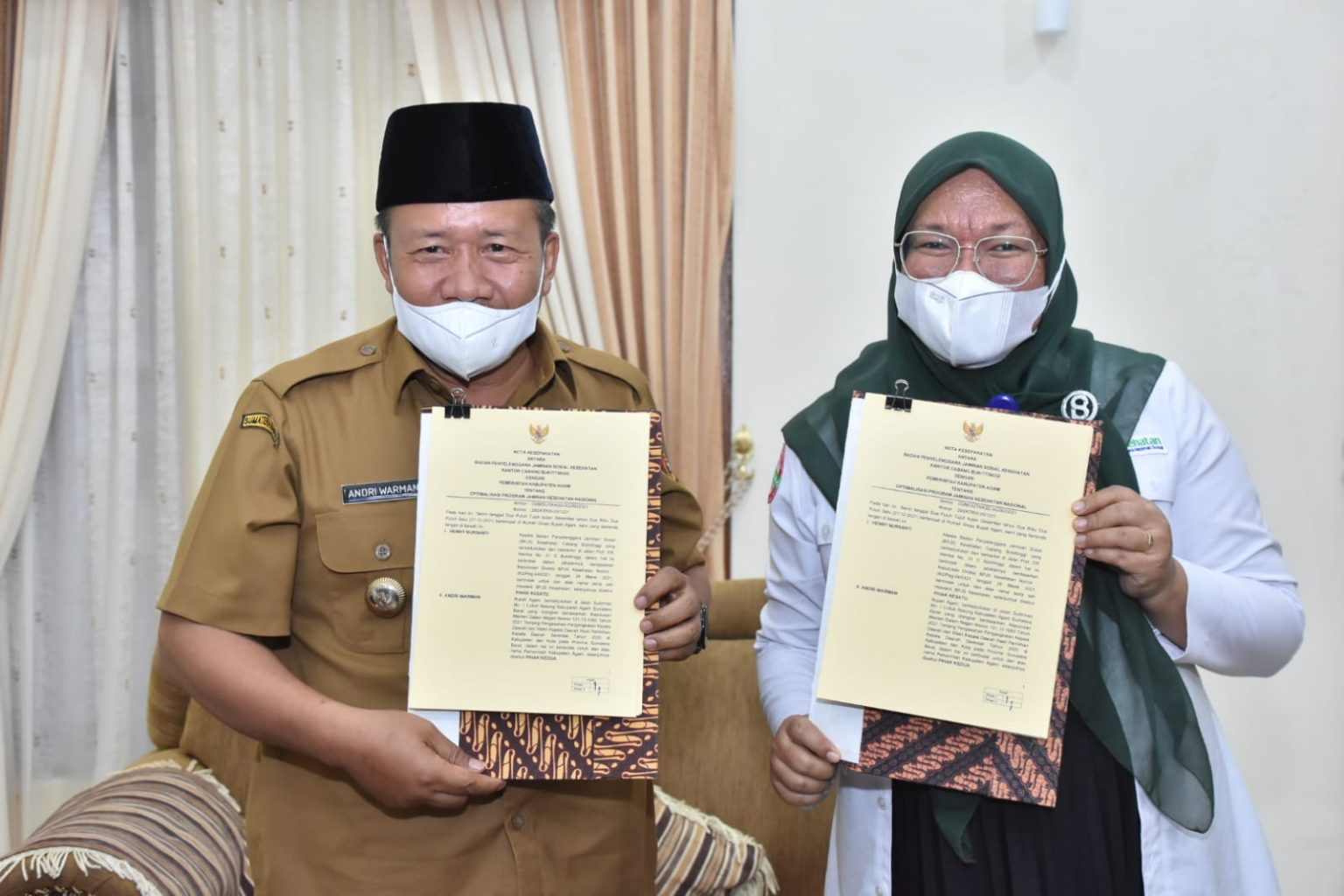 Agam, Marawa – Pemerintah Kabupaten Agam jalin kerjasama dengan Badan Penyelenggara Jaminan Sosial (BPJS) Kesehatan Cabang Bukittinggi, dalam menjamin perlindungan kesehatan mendasar bagi masyarakat daerah itu.
